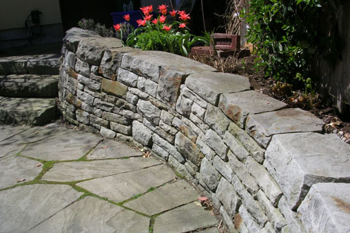 Drystone retaining wall surrounding flagstone driveway, TorontoBack to: Front Page | Dry Stone |